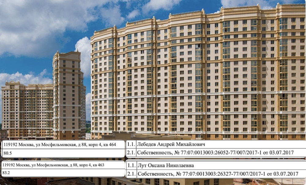 Украшения и одежда — это прекрасно, но и недвижимость нашего министра сельского хозяйства тоже следует упомянуть. В собственности госпожи Лут и ее супруга мы обнаружили две соседние квартиры вот в этом доме на Мосфильмовской, каждая около 80 метров, стоят они около 110 млн рублей.
