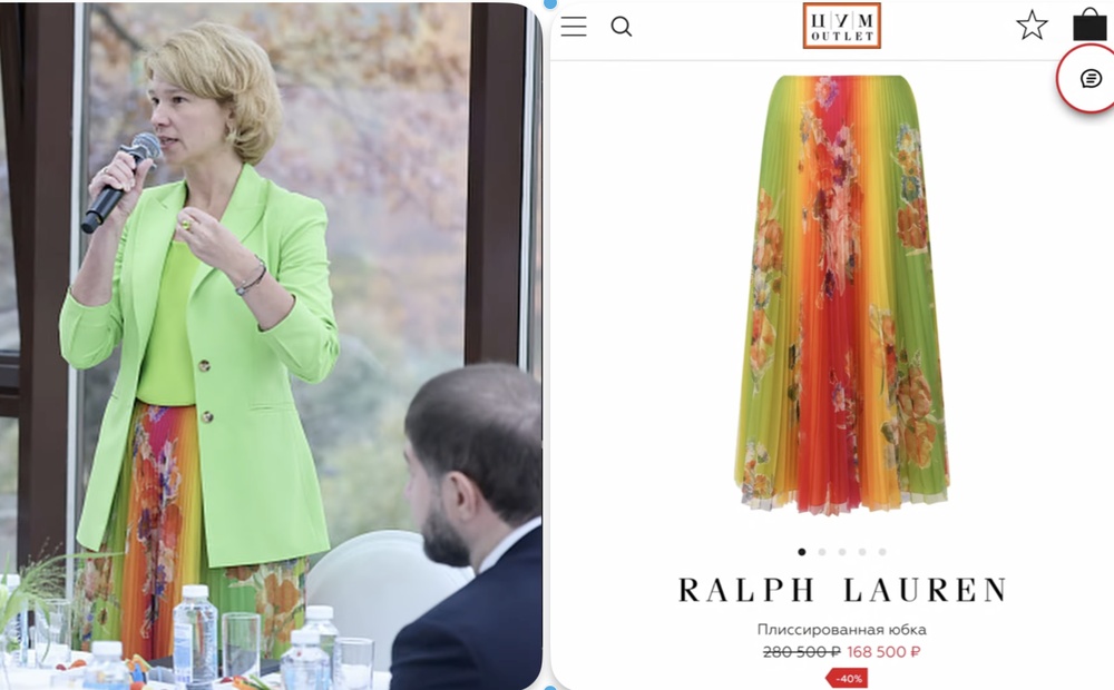 Цветочные принты наш главный аграрий страны очень котирует: юбка Ральф Лорен — 170 000.