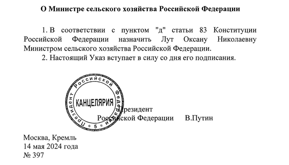 Путин! Это буквально так. Не в смысле, что путинским указом ее назначили, это и так понятно. А в том, что назначением именно Оксаны Лут и именно на эту министерскую должность мы обязаны Путину и системе, которую он лично выстроил.