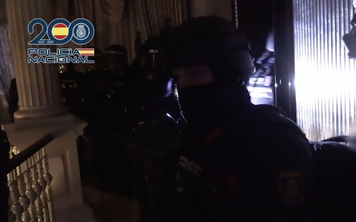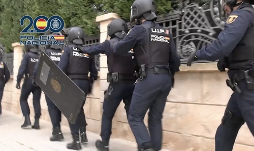 А происходит обыск! Человечки, которых мы видели сверху — это сотрудники национальной полиции испании, вооруженные, с щитами, масками, все как положено — они входят в дом и осматривают каждое помещение.