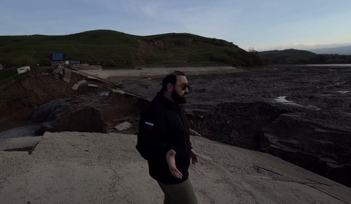 Вот здесь можно посмотреть на кадры, выложенные Хамзаевым с прорвавшейся дамбы на Геджухском водохранилище. Оператор крутится вокруг Хамзаева, тот требует разобраться и вызвать виновных на ковер.