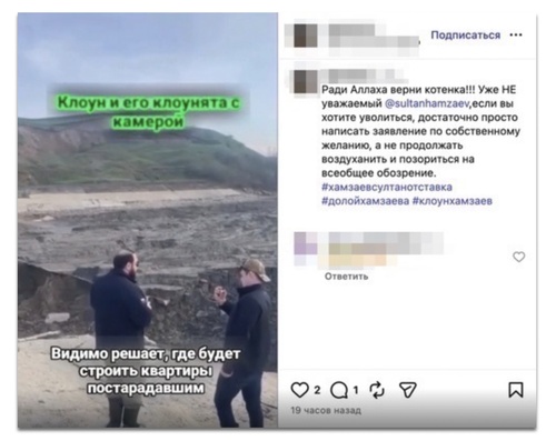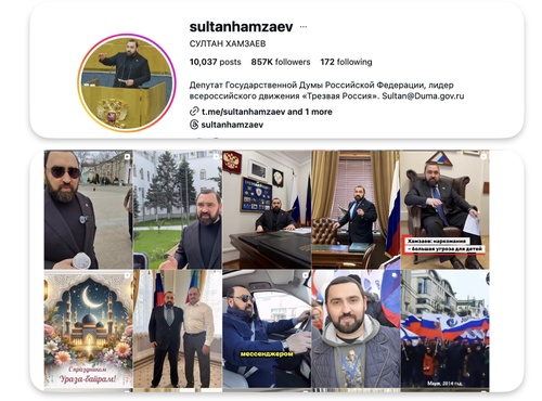 А второй фронт Хамзаева развернут в Инстаграме. В запрещенной «экстремистской» социальной сети депутат ведет личный блог — там миллион одинаковых видео в жанре «депутат осмотрел что-то».