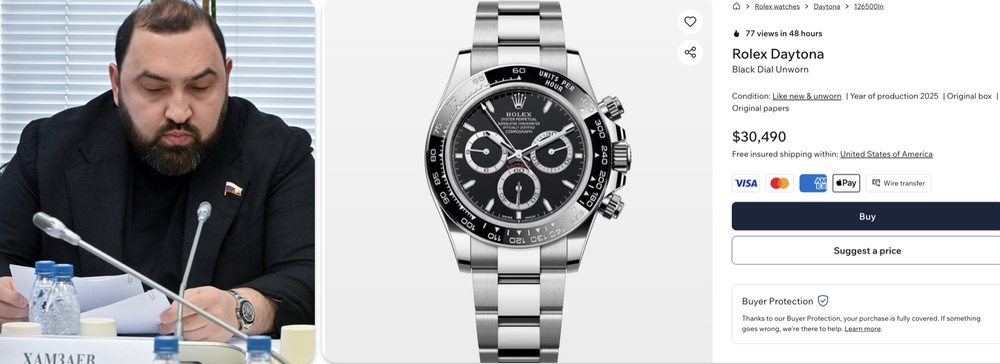 Дорогие часы Хамзаев тоже любит. Например, он носит Rolex Daytona за 2,3 миллиона.
