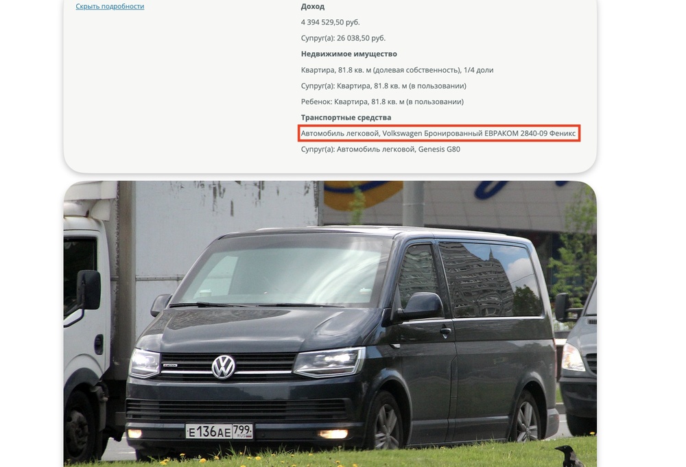 Иванова Хамзаев использует не только как оператора. На него переписывается и депутатское имущество. В декларации Хамзаева есть бронированный микроавтобус Фольксваген.