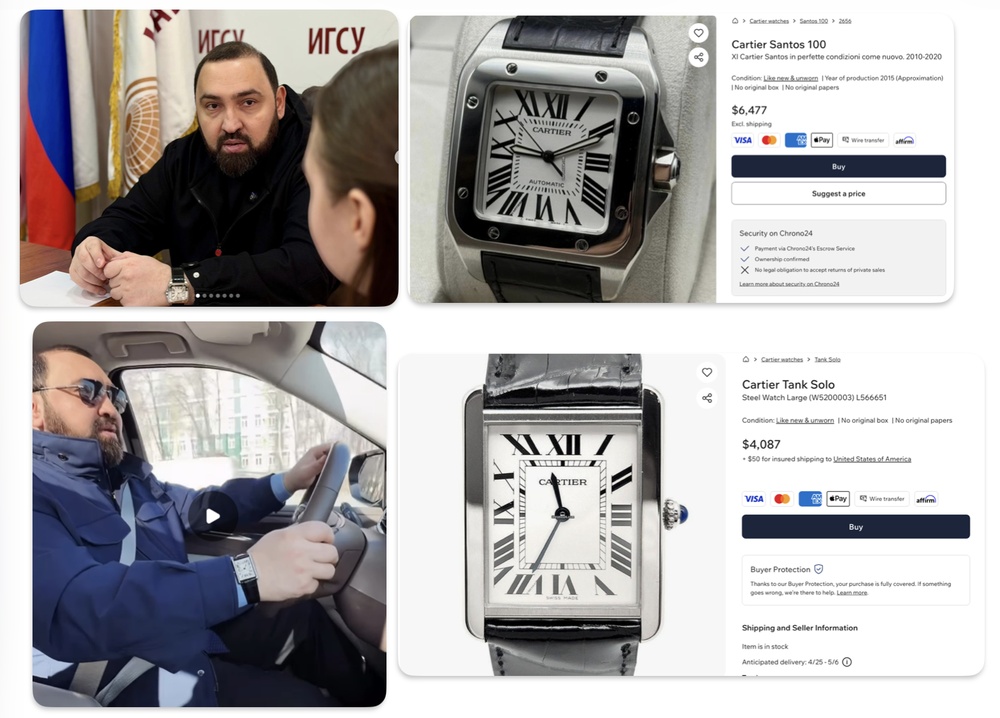 Еще у него есть две пары часов Cartie за 480 и 300 тысяч рублей.